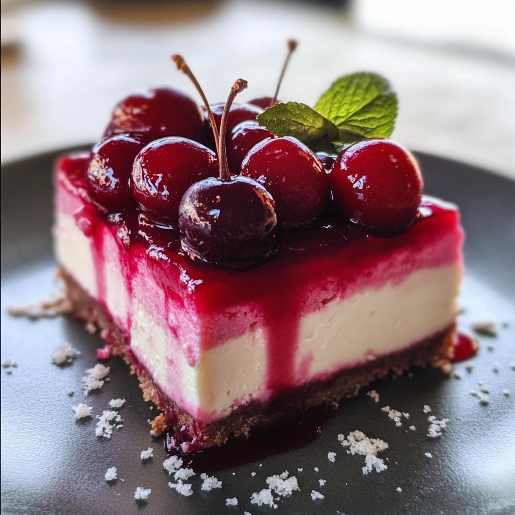 Indulge in the rich and creamy goodness of this decadent Layered Cherry Cheesecake Dessert, … / Easy Recipes