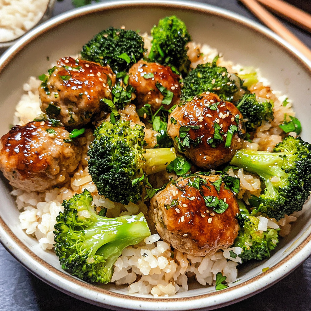 Chicken Meatballs with Broccoli and Rice