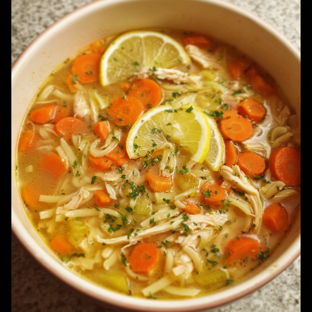 Comforting Chicken Noodle Soup with Carrots and Lemon