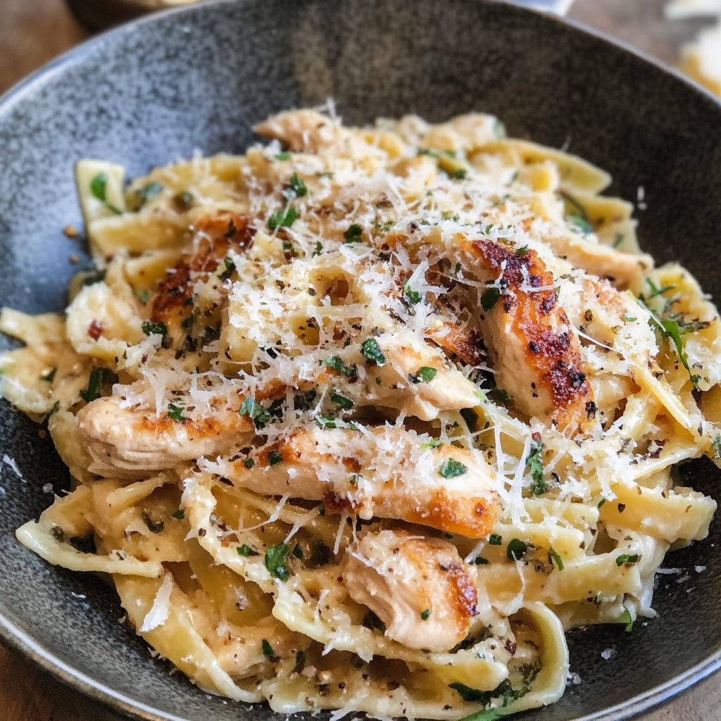 • Step 6: Serve the Creamy Chicken Pasta with Parmesan and Herbs warm, garnished with freshly chopped parsley and additional parmesan cheese if desired.