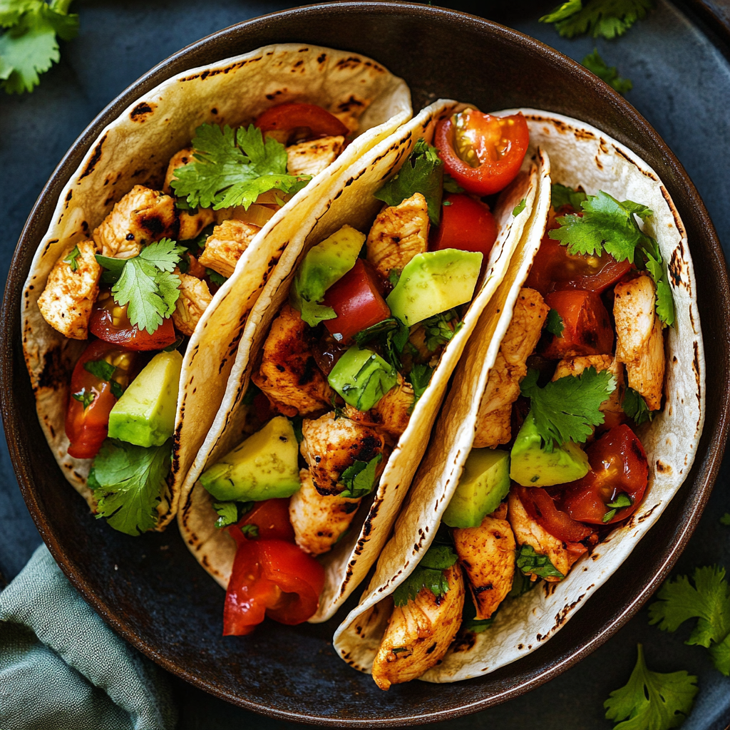 Chicken Tacos with Avocado, Tomatoes, and Cilantro