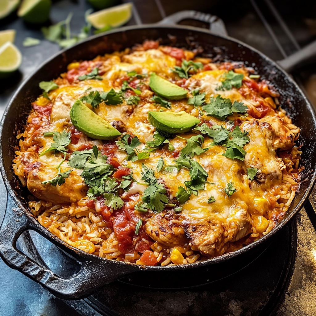 What sets this One Skillet Cheesy Cuban Chicken Rice Bake apart is the perfect harmony of savory, zesty, and creamy flavors. The tender chicken and fluffy rice are infused with Cuban-inspired seasonings like cumin, oregano, and garlic, while the melted cheddar and Monterey Jack cheese create an irresistible gooey topping. Plus, it’s all made in one skillet, making cleanup a breeze!