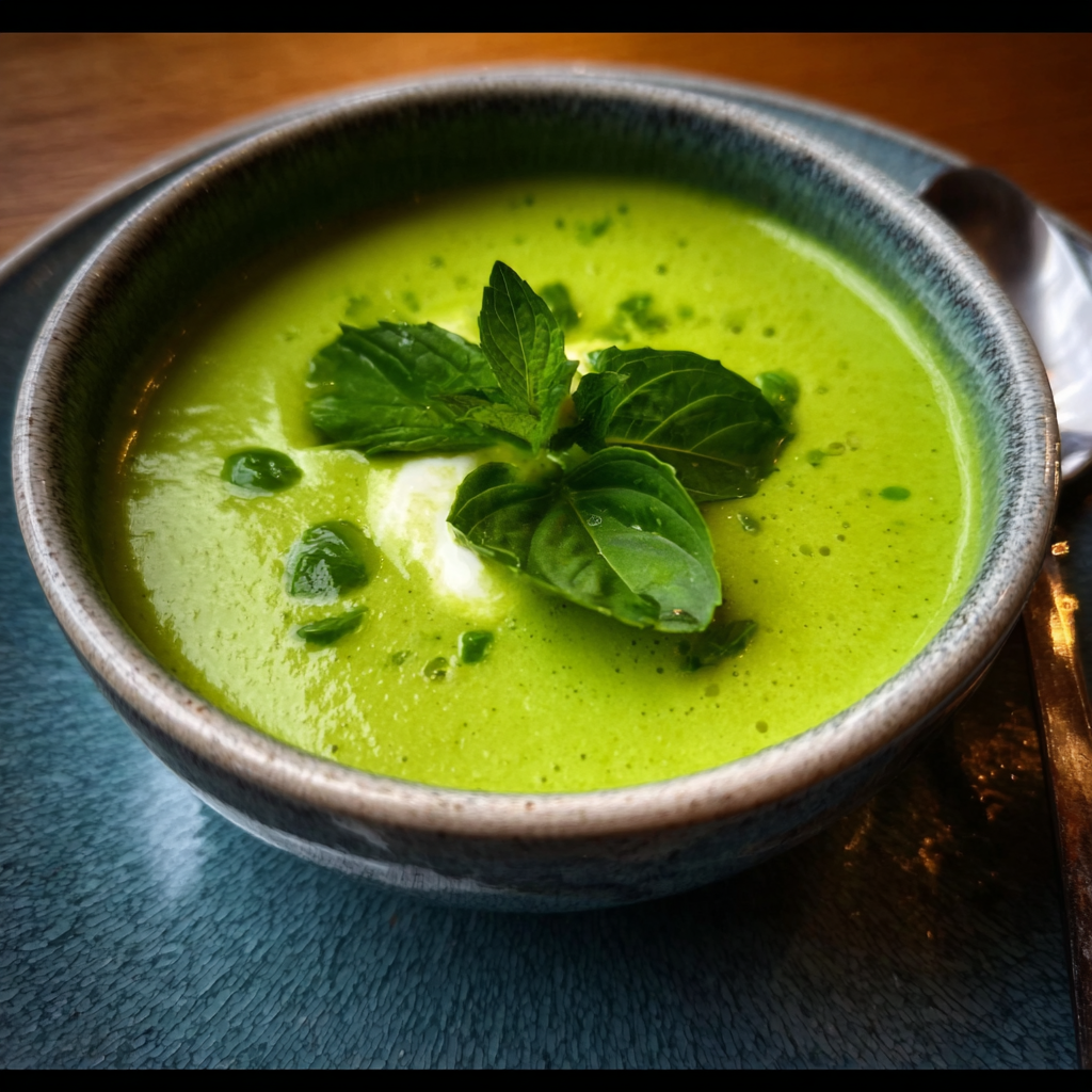 Pea Soup with Basil Garnish: A Vibrant and Flavorful Delight