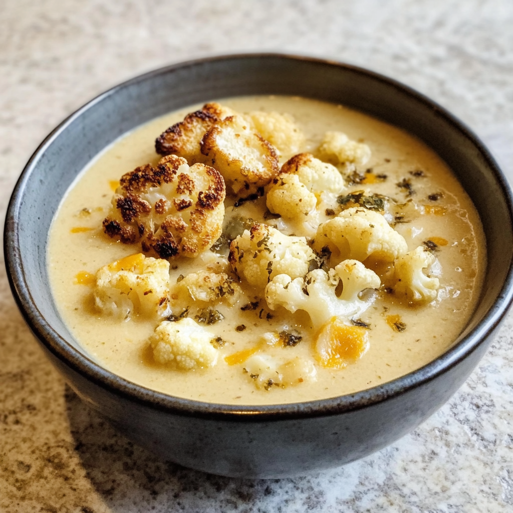 Roasted Cheddar Cauliflower Soup